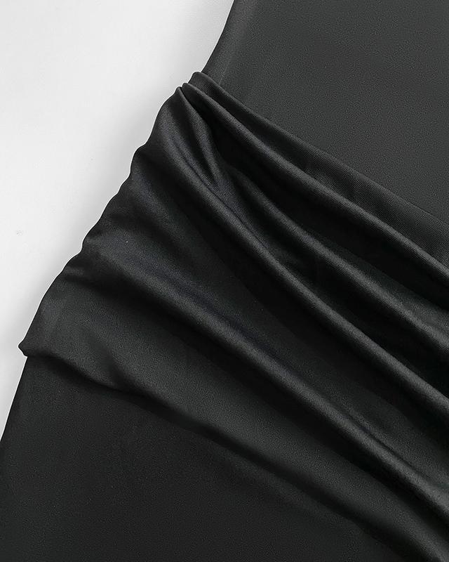 ·Style & Fit: Body-hugging silhouette from bust to hips highlights curves, while ruched split hem adds movement and shape.