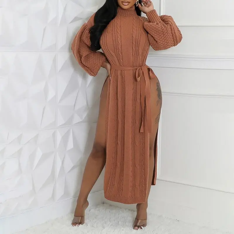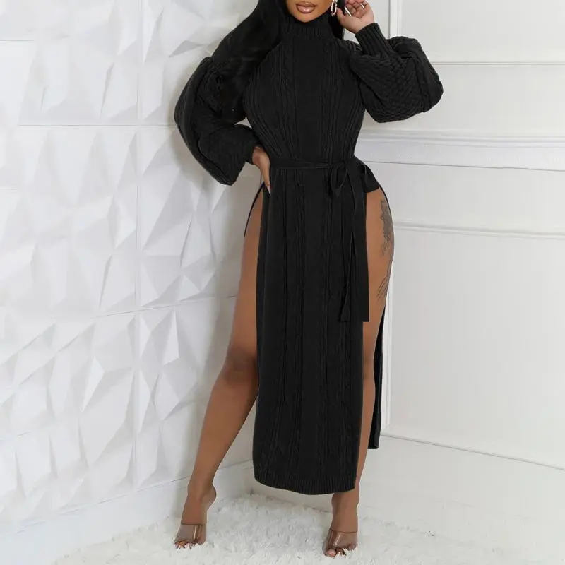 ·High side slit – Dramatic slit reaching the waist enhances movement and layering options.
