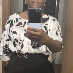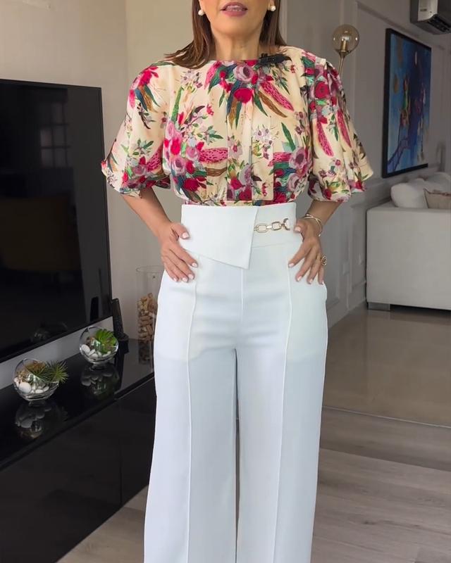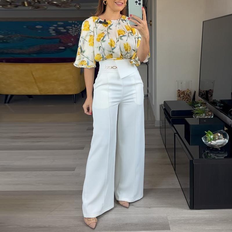 La blusa muy bonita así como se ve en la foto el pantalón demasiado amplio y super largo. Todavía no se si me voy a quedar con él mido 5'5" lo pedí en L y me quedó enorme