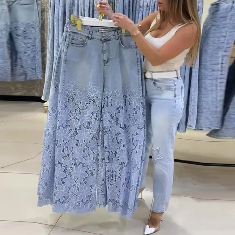 ·Design Details: Features guipure lace splicing, button and zipper fly closure, and functional pockets, blending chic details with practical design.