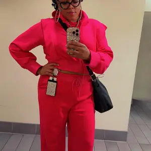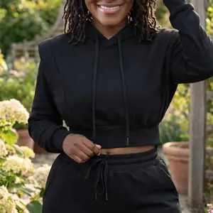 ·Silhouette & Fit: The cropped hoodie and wide-leg sweatpants create a relaxed, flattering silhouette, ideal for casual, everyday wear.