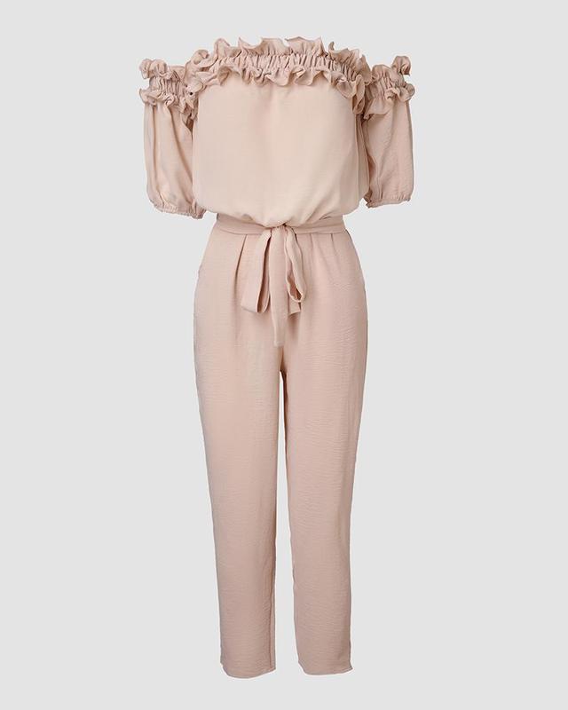 ChicMe Women's Frill Trim Off Shoulder Short Sleeve Tie Waist Overalls Casual Textured JumpsuitChicMe Women's Frill Trim Off Shoulder Short Sleeve Tie Waist Overalls Casual Textured JumpsuitChicMe Women's Frill Trim Off Shoulder Short Sleeve Tie Waist Overalls Casual Textured Jumpsuit