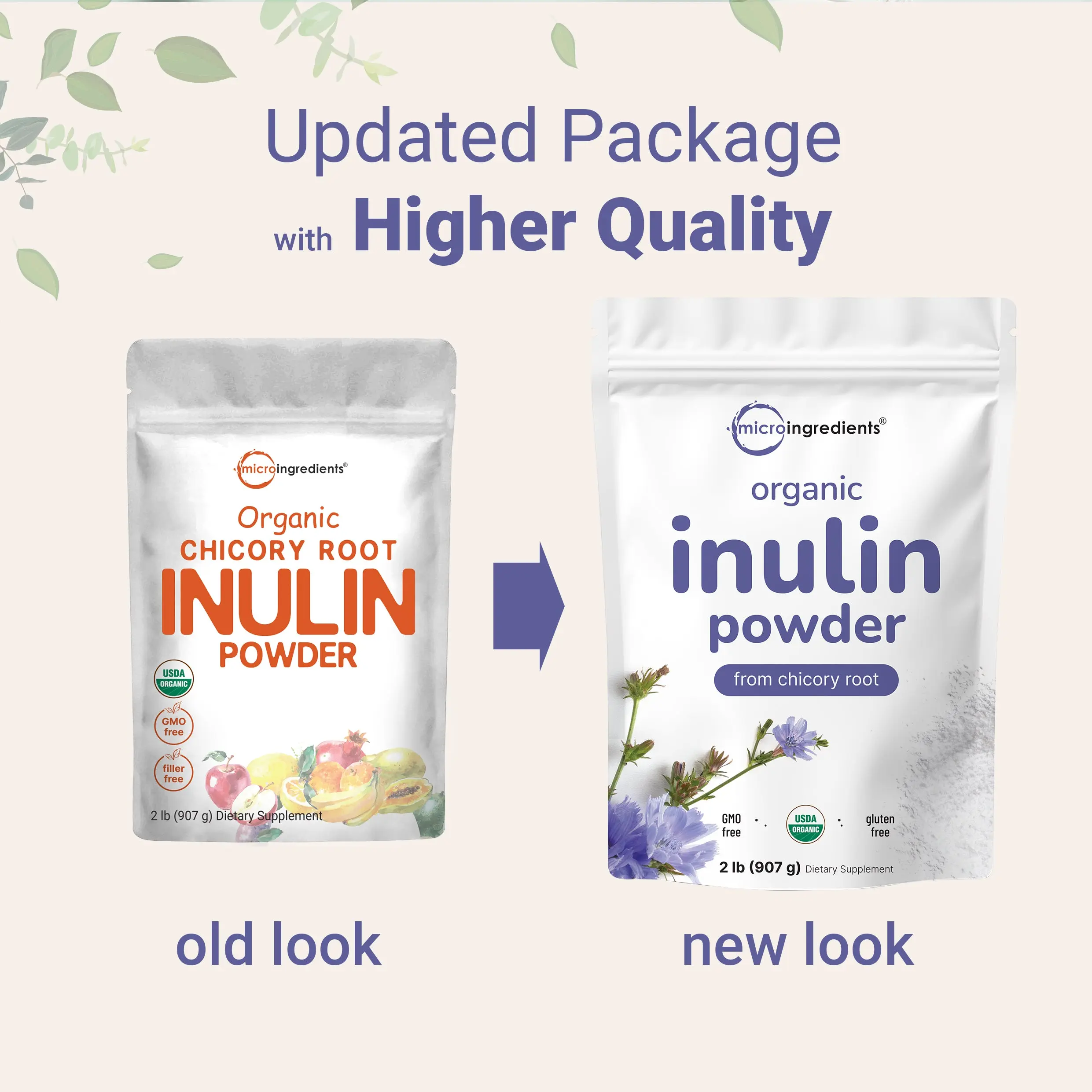 ·Micro Ingredients offers raw Organic Chicory Root Inulin powder, authentic chicory root source, 2lb bulk supply, rich in water-soluble prebiotic dietary fiber.