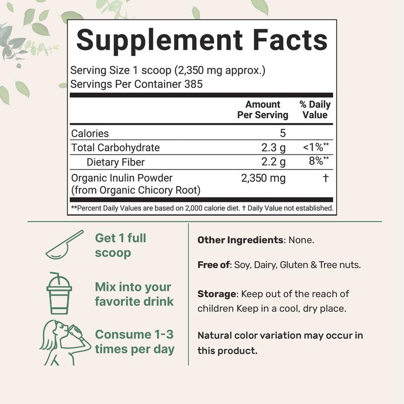 ·Premium non-GMO inulin supplements. Free of soy, dairy, gluten, fillers, preservatives, artificial flavors, and tree nuts. 3rd party lab test to ensure a product that is safe, pure, and potent.