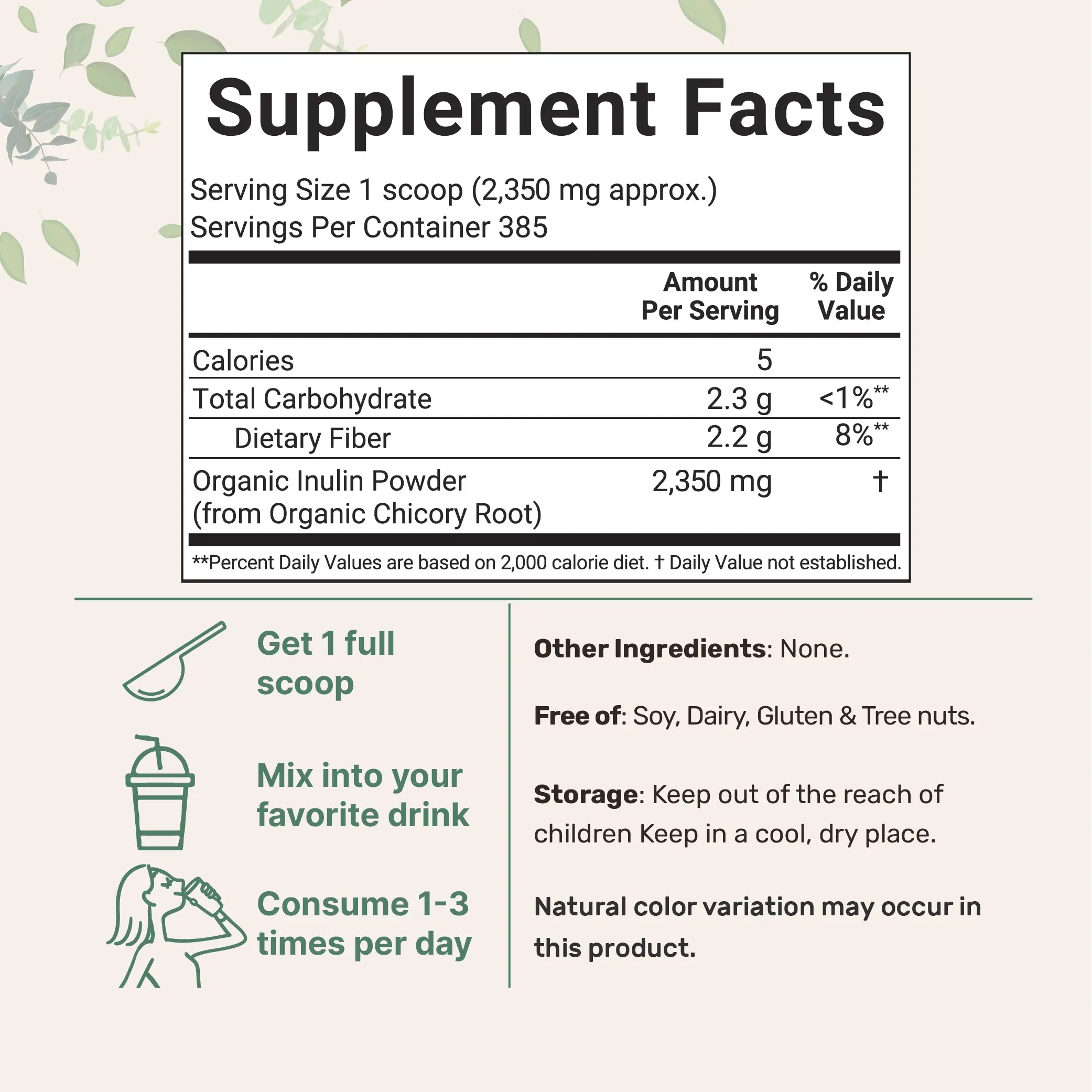 ·Every pouch provides up to a 385 day supply, 1 scoop serving size contains approximately 2,350mg pure vegan friendly inulin.