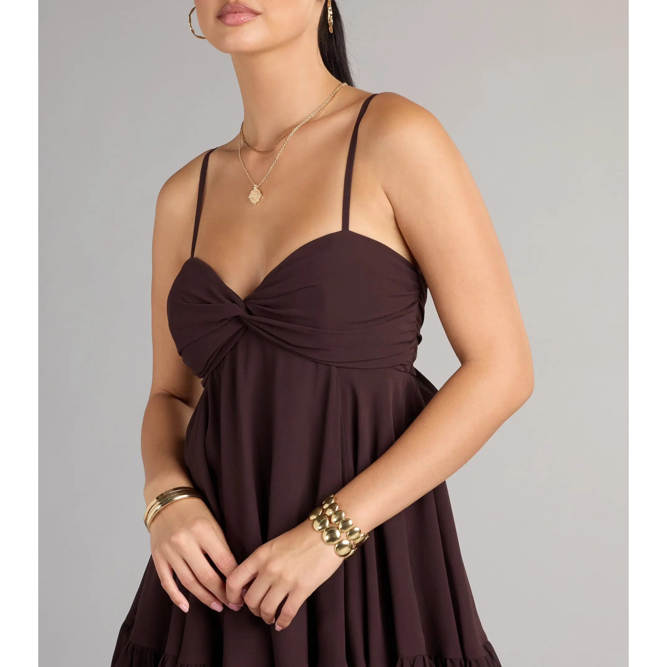 ·Sweetheart neckline, twist bust, padded bra cups
