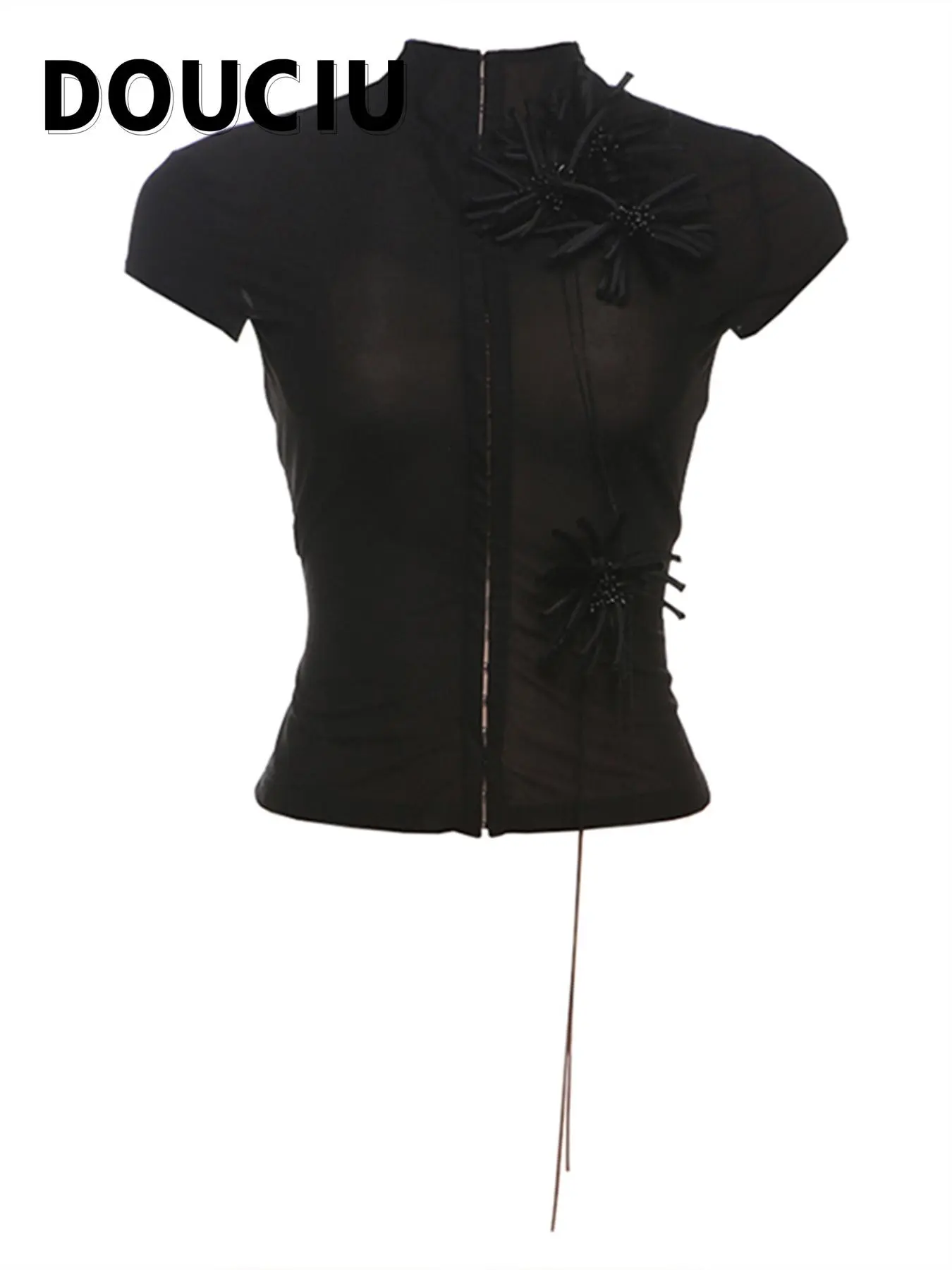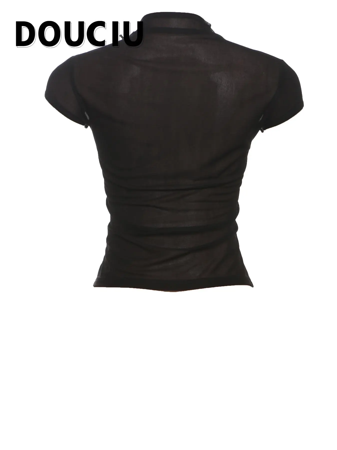 5. DOUCIU Summer Thin Cool Perspective Intellectual Elegant Versatile Street Chiffon Mesh Short-Sleeved Top T-Shirt