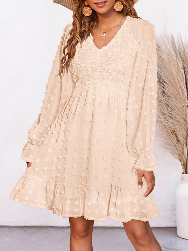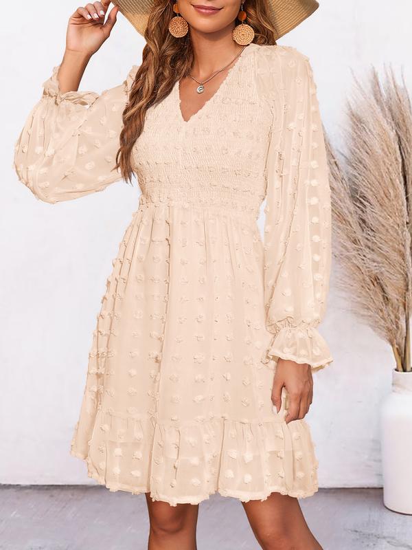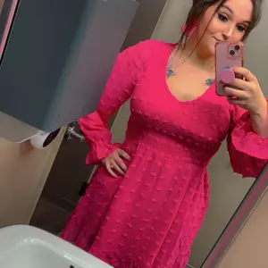 Pretty dress, bought in the bright pink. It is a little shorter than I wanted but will keep it. I’m 5’3, 150 lbs, and I purchased a medium. The smocking in the top does highlight my breast.
