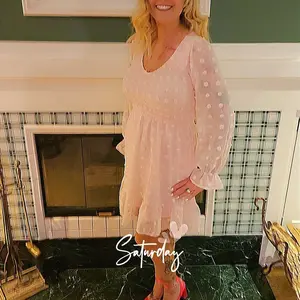 Beautiful polkadot dress. Size down if you order it. Quality is really nice.