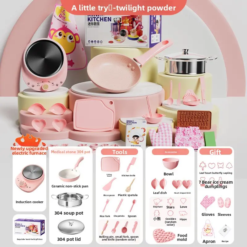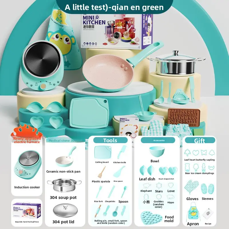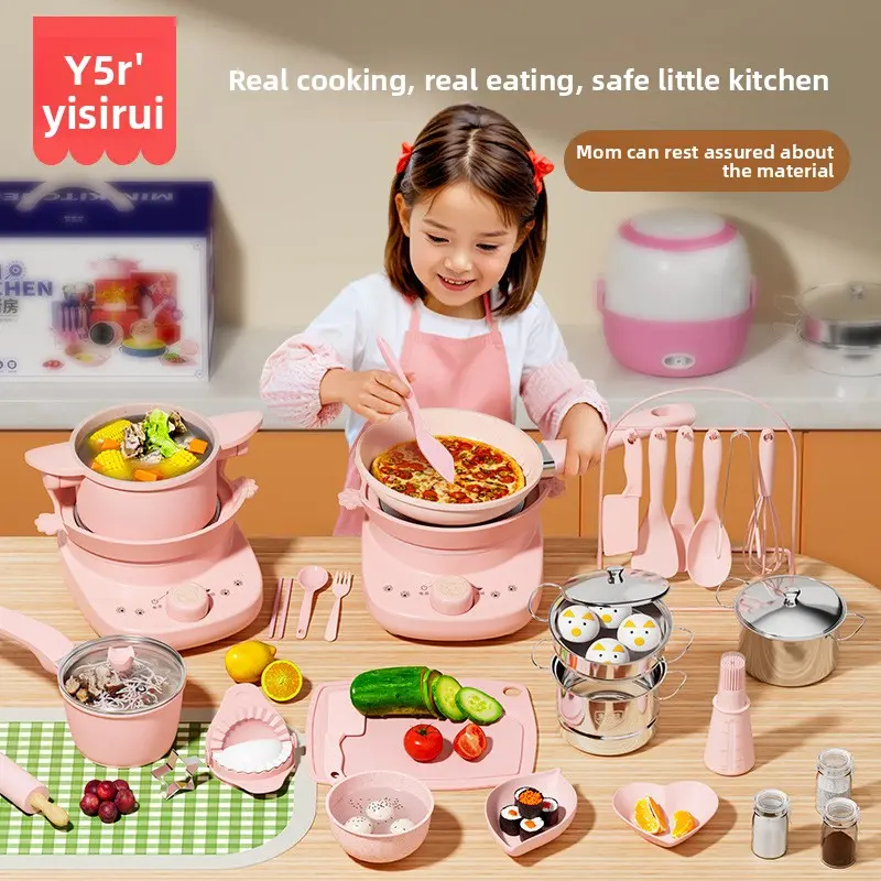 This children's cooking set is a safe mini kitchen designed for toddlers. It includes essential kitchen toys perfect for girls and boys. Create real food with this set, fostering creativity and fun. 🌟