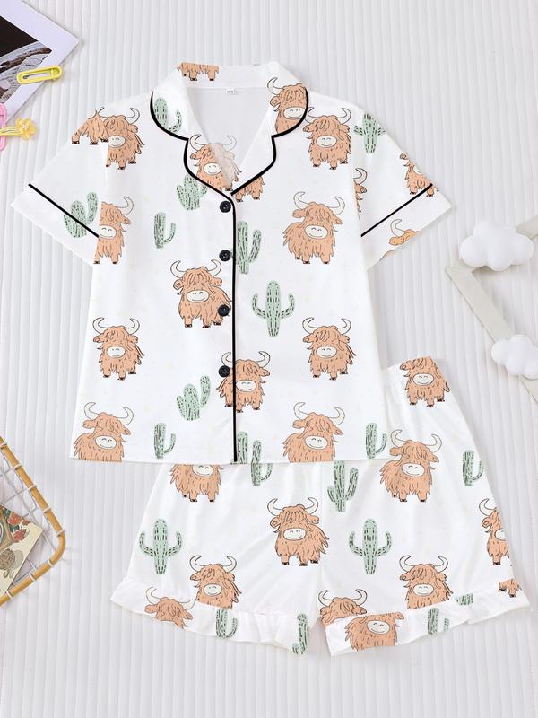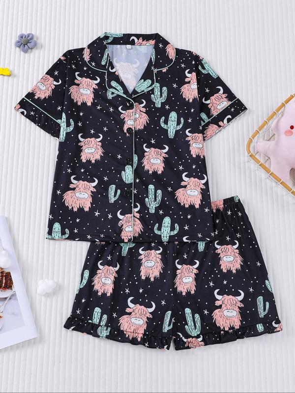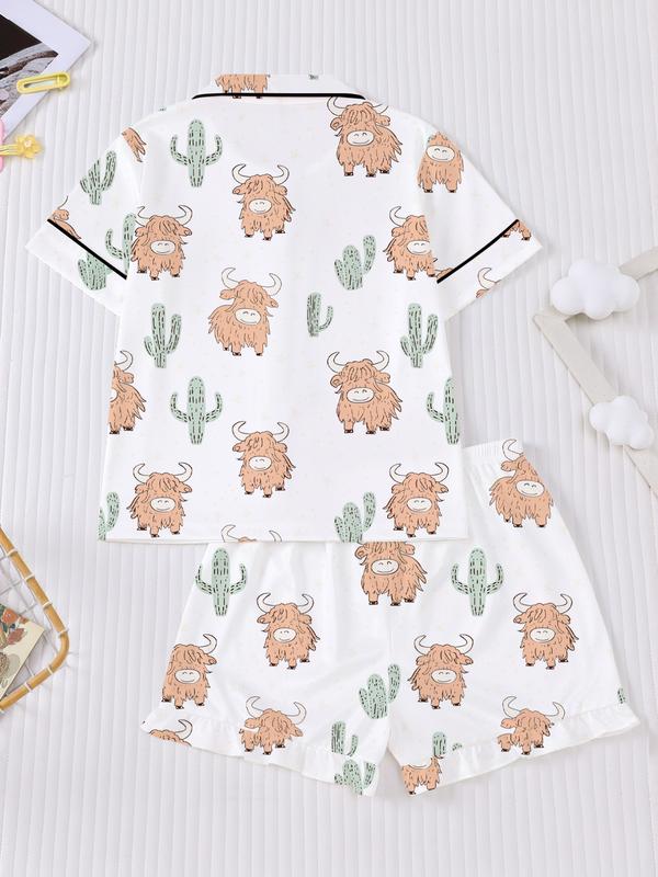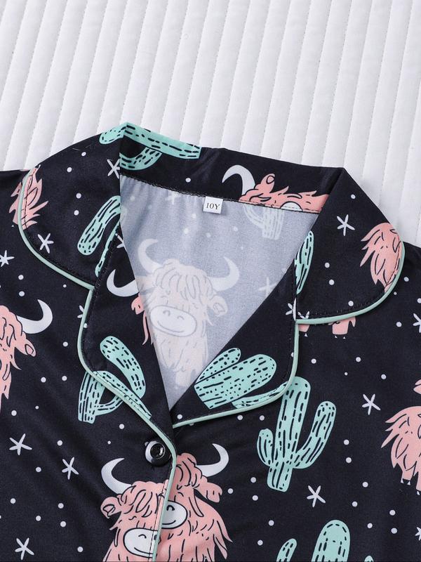 Cactus & Cows! 🌵🐄 Girls' Short PJ Set - Comfy & Cool Home Essential #spotlightfinds  #tiktokshopblackfriday #tiktokshopcybermonday #girlspjset #kidpajamas
