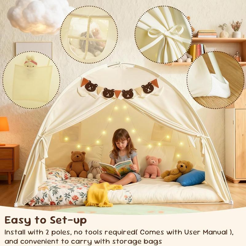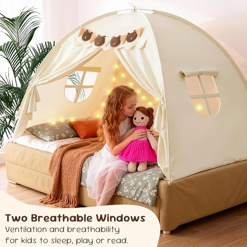 Children's play tent with Stars Light & Flags, Breathable Sleeping Bed Tent, Privacy Space Dream Playhouse for kids Indoor Bedroom Floor Portable Play Tent