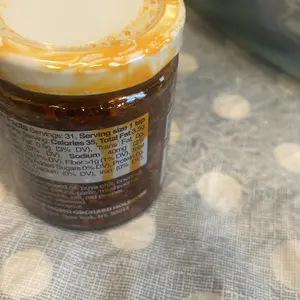 Nutrition: Servings: 31, Serving size 1 tsp (5g), Amount Per Serving: Calories 35, Total Fat 3.5g (4% DV), Sat. Fat 0g (0% DV), Trans Fat 0g, Cholest. 0mg (0% DV), Sodium 40mg (2% DV),Total Carb. 1g (0% DV), Fiber