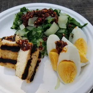 Our Chili Crunch is a spicy-crunchy chili oil. It features an umami base, plus a lot of the flavors and textures we love crispy shallots, sesame seeds, dried garlic, and coconut sugar for a hint of sweetness. Chili Crunch is the perfect balance of spicy and crunchy.