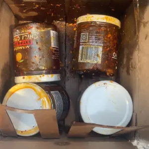 2 arrived empty only the chili the oil was all over the box and inside of it as well 2 are okay not sure why they would ship them laying down all 4 were like that but only 2 manage to leak