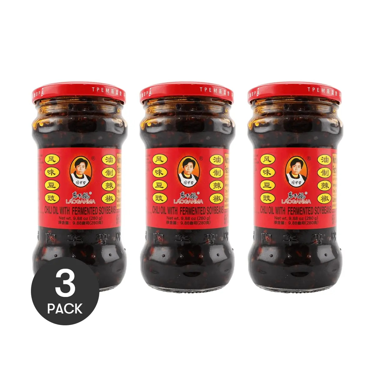 3Packs LAOGANMA Chili Oil with Black Soybean in Jar 280g/Pack