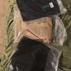 I bought them for work but not very stretchy and one of the pants is missing a button. Image is after the first wash.