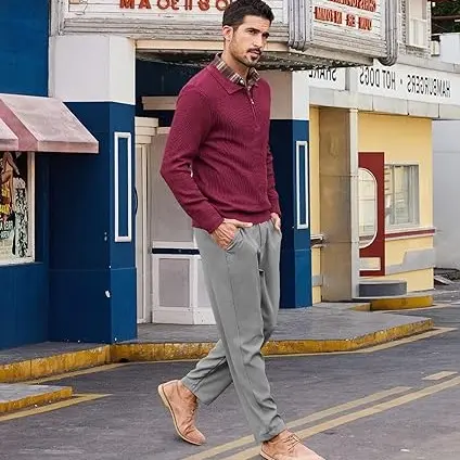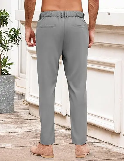 5. COOFANDY Men's Chino Pants Regular Fit Elastic Waist Basic Flat Front Drawstring Casual Pants Menswear Belt Black Day Black Day Slim Fit Soft