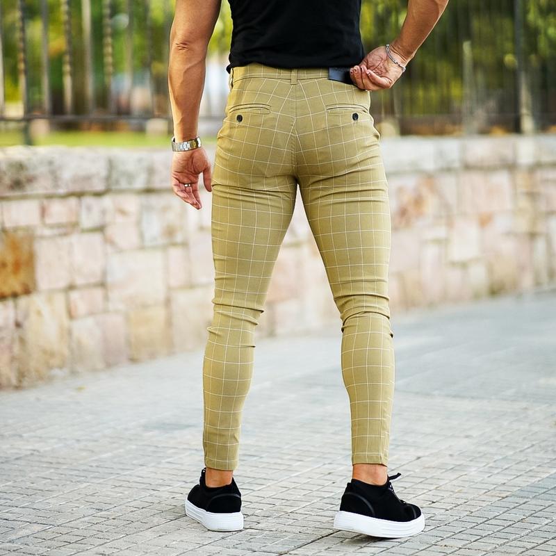 GINGTTO Mens Chinos Skinny Slim Fit High Waist Stretchy Plaid Dress Pants