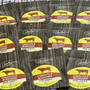 Just placed a repeat order for the chipotle bourbon beef jerky. For future review of this product, feedback will be random and off topic. This beef jerky is medium soft chew amazing spicy sweet bourbon flavor, perfect with a frozen margarita. Give it a shot if you like a little adult kick.