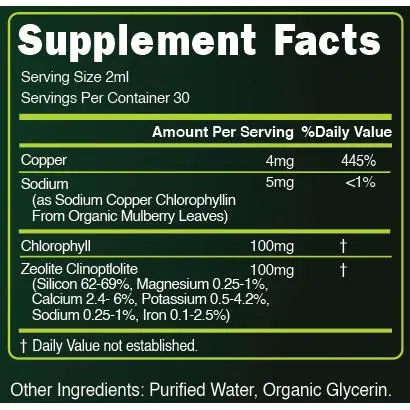 Formulated with clean, natural ingredients — Chlorophyll and Zeolite — in a convenient liquid tincture for faster absorption.