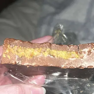 Got a bad bar, was not fully filled with Dubai spread. A lot of spaces that had to have spread only had milk chocolate. Much too expensive to miss corners in my opinion. Just get the spread in the jar or you’ll be paying too much for milk chocolate. Chocolate to thick need more Dubai for sure.