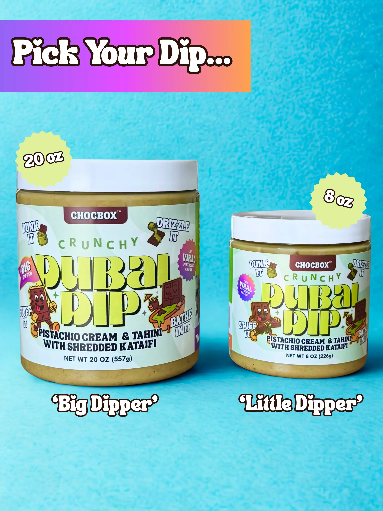 Take your taste buds on a luxury trip with Dubai Dip — the ultra-creamy, ultra-crunchy spread that broke the internet. We blended rich pistachio cream, silky tahini, and golden strands of crispy kataifi to create a bold, nutty, and totally addictive flavor you’ll want to put on everything.