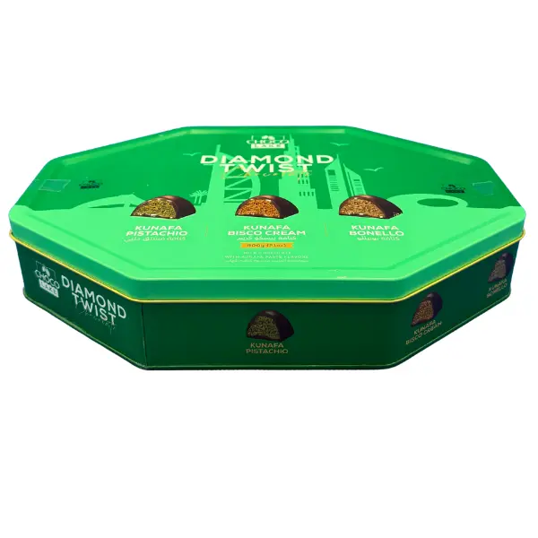 ChocoLake Luxury Tin Mini Dubai Chocolate Twists-3 Flavors Pistachio Kunafa, Bisco Cream Kunafa, Bonello Cream Kunafa