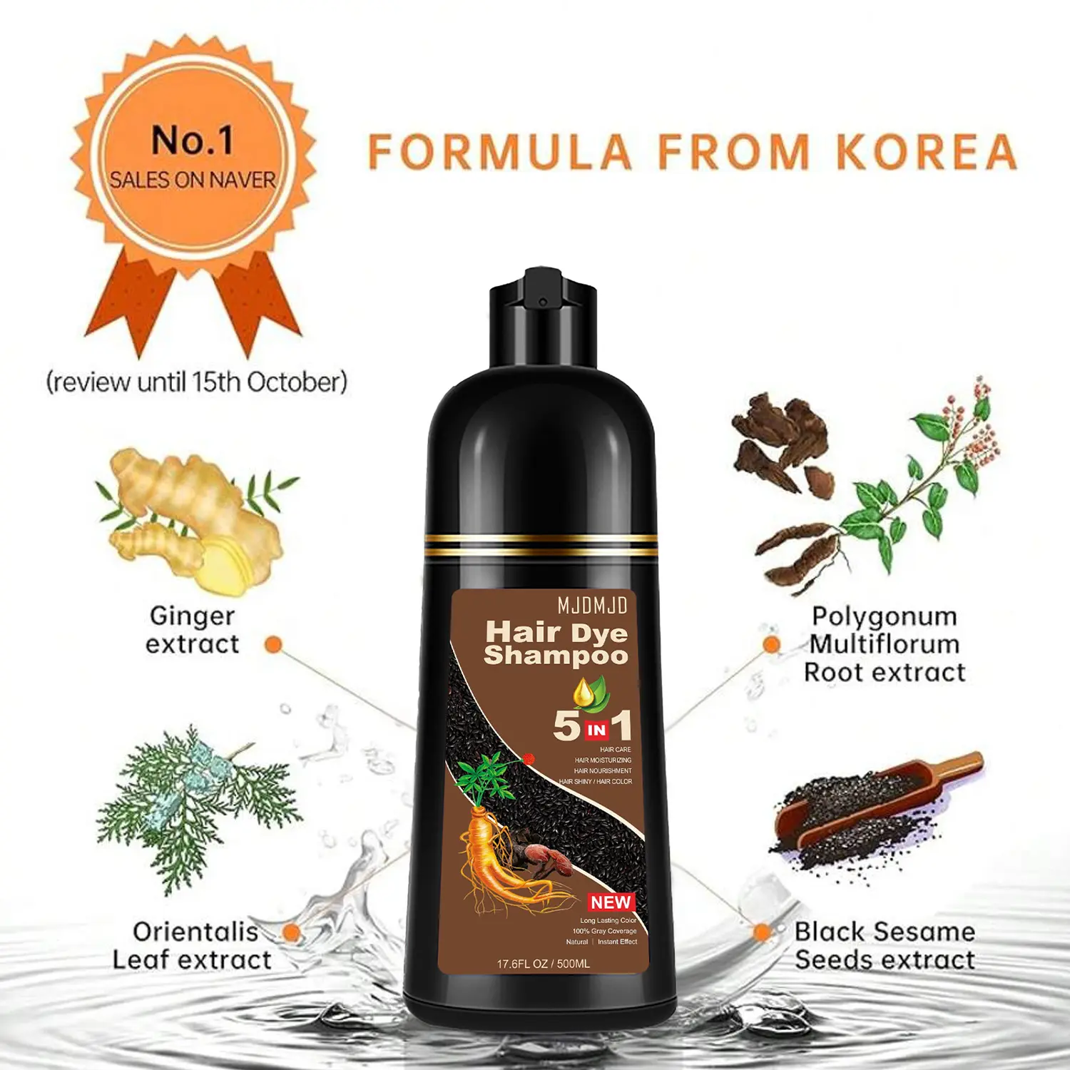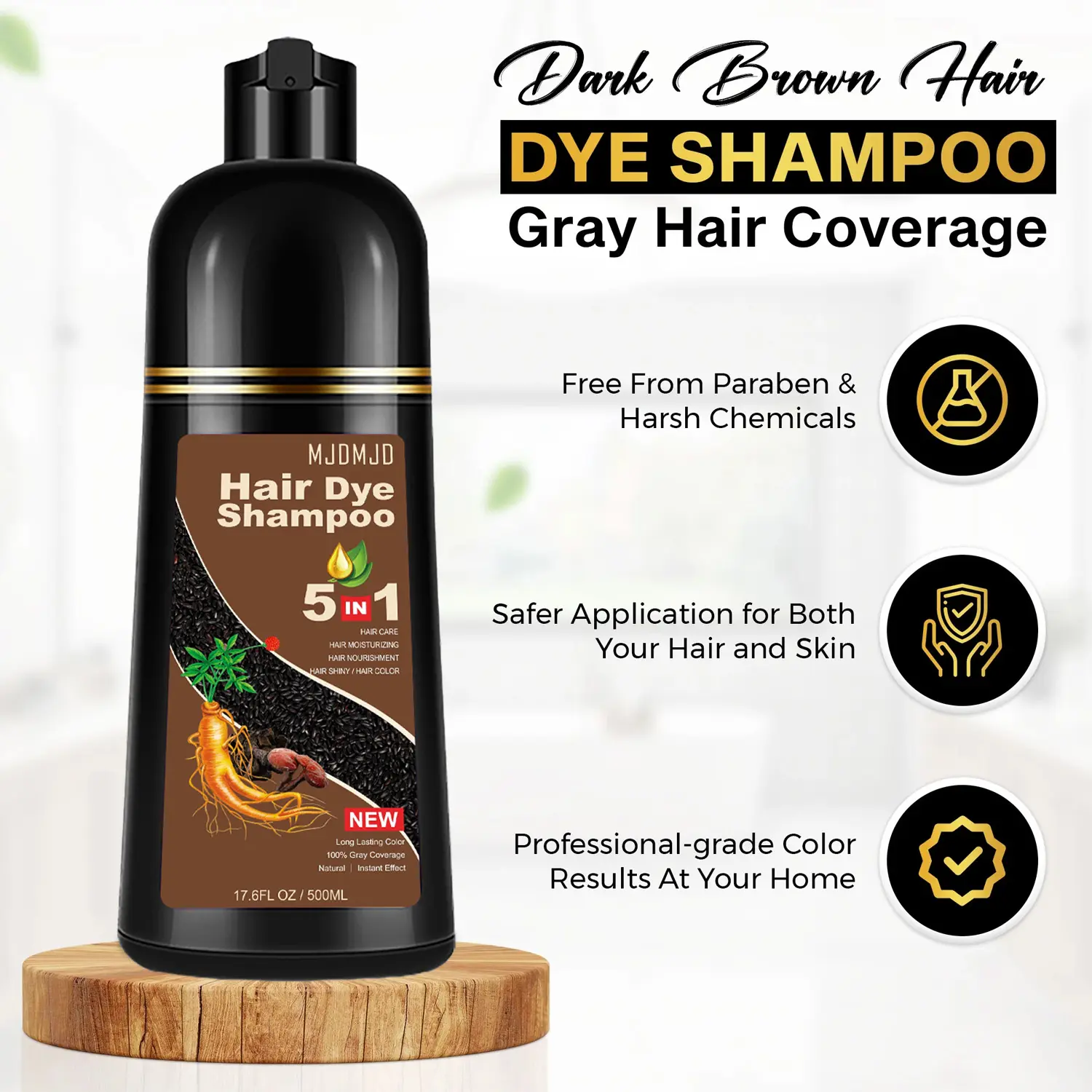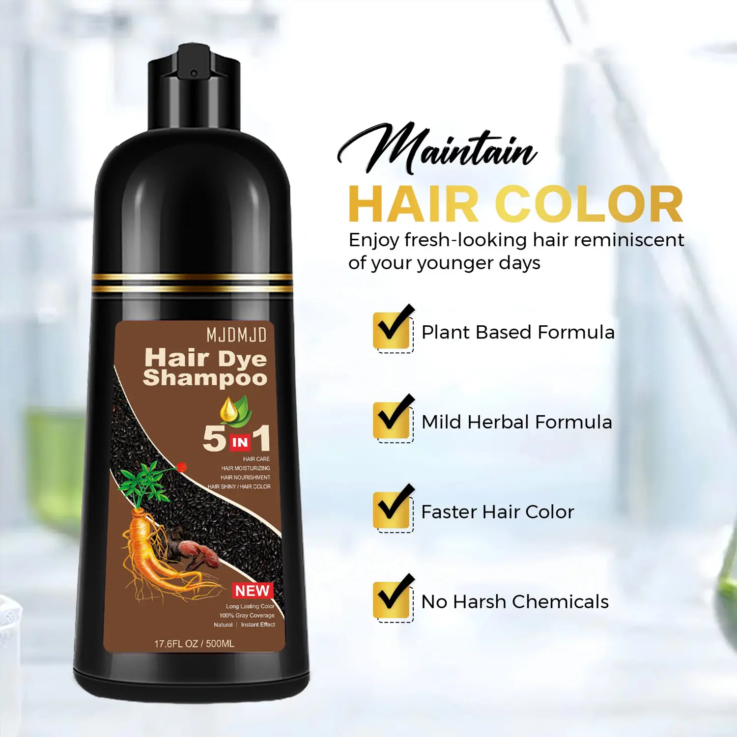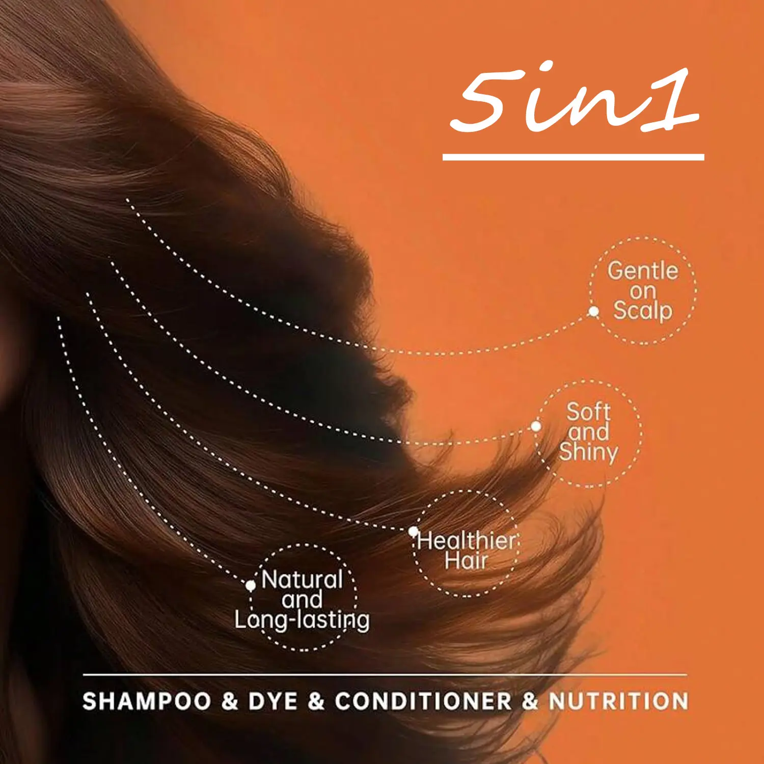 ·【Cleanse And Condition While You Color】: Our magic 5-in-1 hair color shampoo colors, cleanses, and conditions your tresses all at once! Make your hair soft, shiny and manageable after dyeing. Infused with herbal ingredients like Polygonum Multiflorum to anti-gray hair; Ginseng to nourish hair follicles. (Perfect gifts for parents and elders)