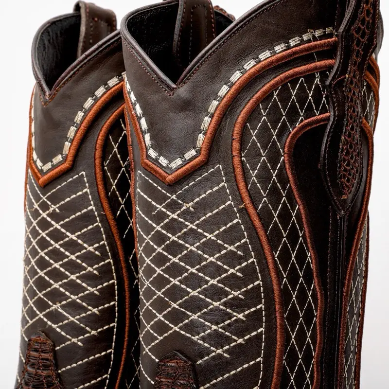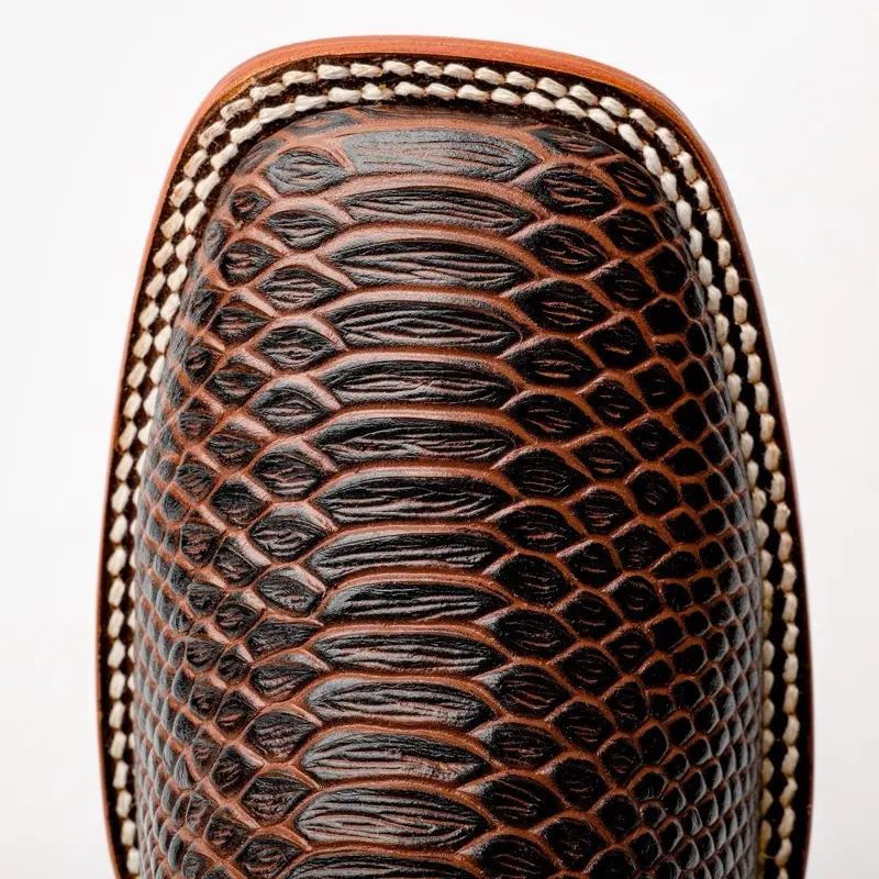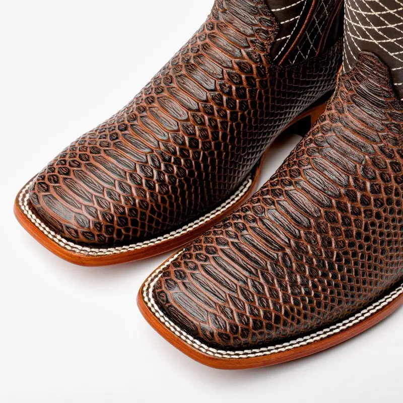 5. Chocolate Brown Python Leather Boots -Square Toe