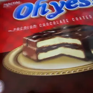 Nice chocolate layers in between soft bread. Creamy in the middle, solid chocolate on the outer. A favorite.