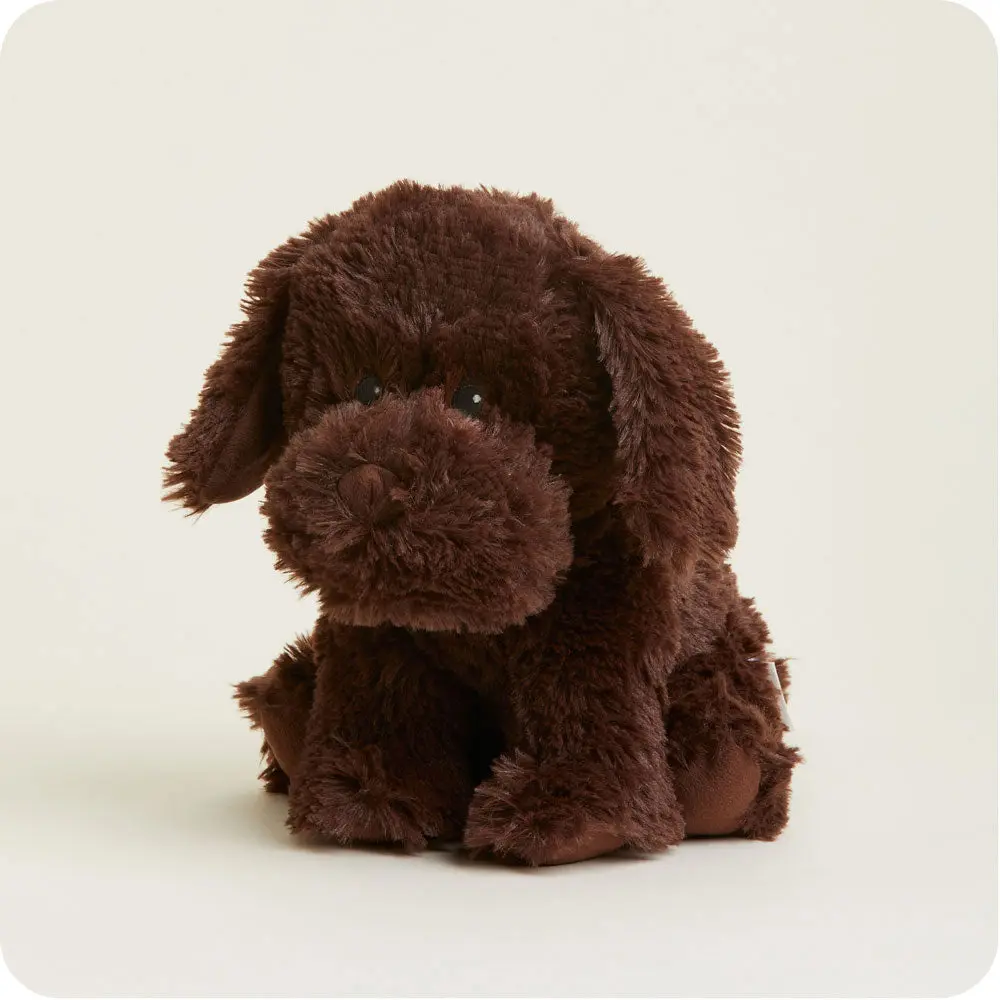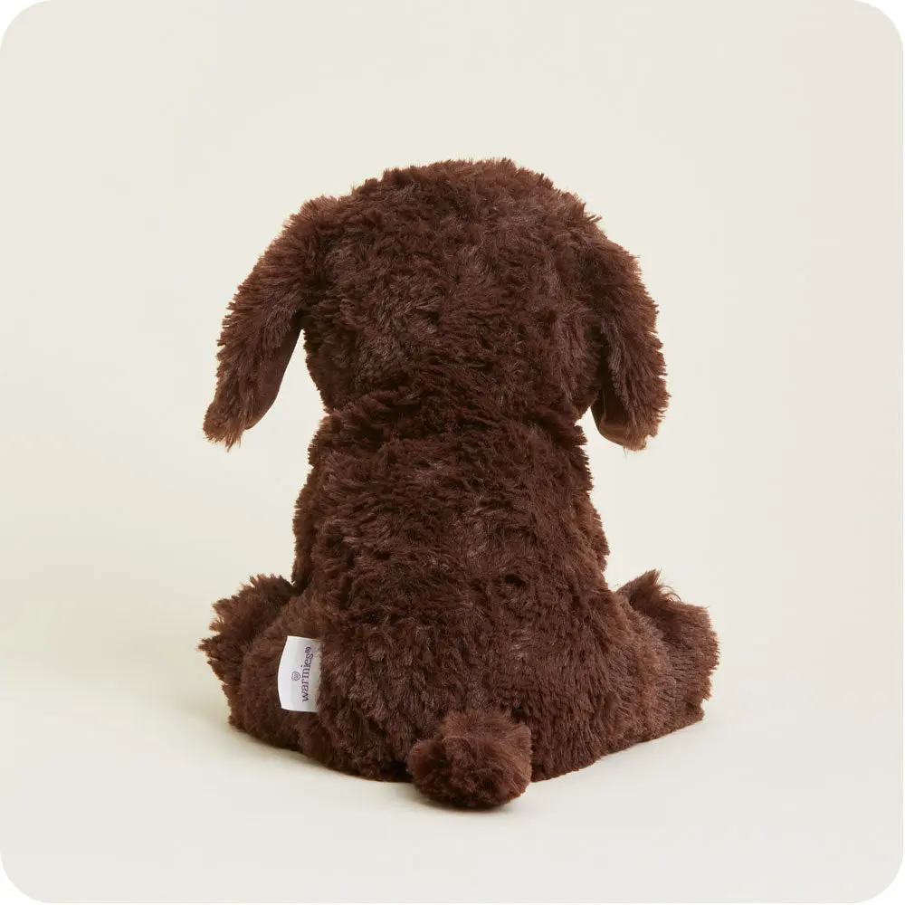Fetch warmth and cozy comfort with Chocolate Lab Warmies. Sitting sweetly, this lovable pup warms in the microwave, carries the calming scent of lavender and is gently weighted to ease stress.