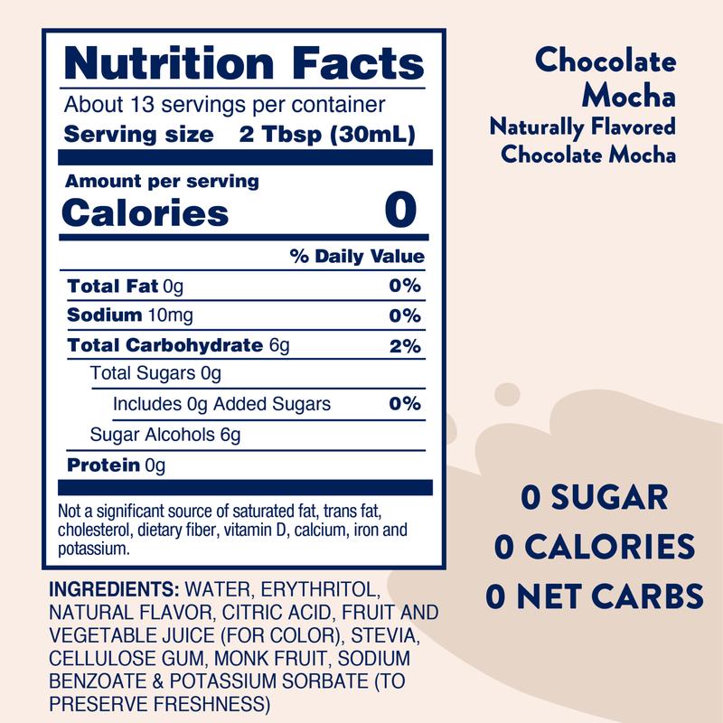 Our NEW, Naturally Sweetened Chocolate Mocha Syrup provides all the flavor of our classic mocha syrup with no artificial sweeteners, flavors, or colors. Naturally sweetened with stevia, monk fruit, and erythritol. More natural, more flavor, 0 calories.