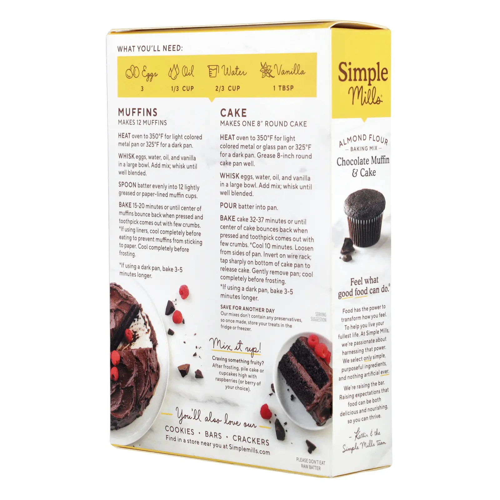 Simple Mills enriches lives and bodies through simple, delicious, real foods. We strive to make healthful choices easy by offering food that tastes great in the moment and nourishes your body for the long-term. We believe if you don’t recognize an ingredient, your body won’t either, so we handpick ours with purpose – only including things that nourish you. Nothing artificial, ever.