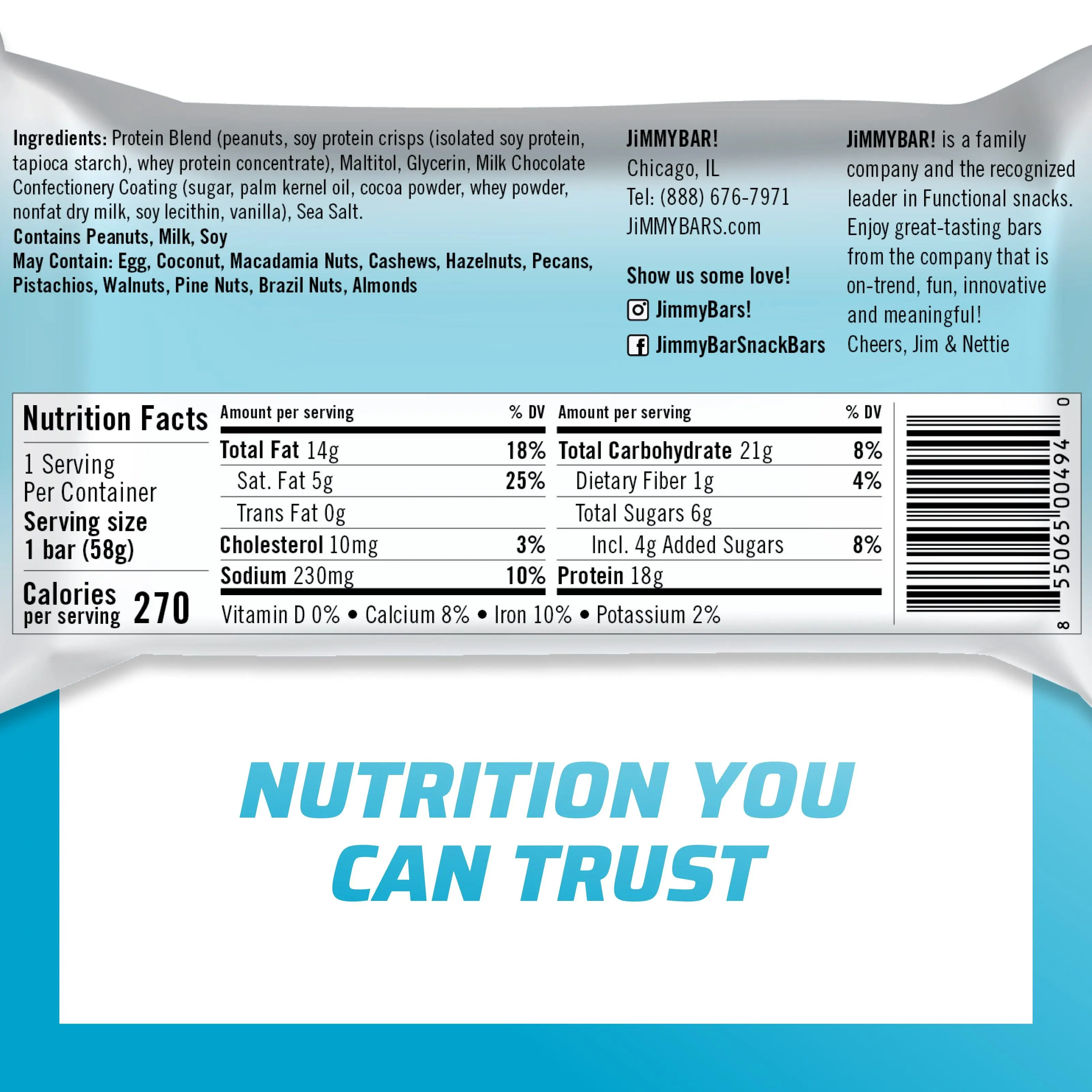 Wow! So yummy! I was not expecting such crunchy, chewy goodness. I’m not a fan of protein bars because of the taste and texture but the chocolate, peanut butter is definitely my favorite. I can never get enough protein in my diet and the Jimmy bar helps with 18 grams and only 6 grams of sugar.