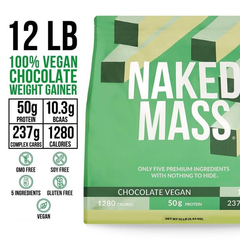 5. Chocolate Vegan Mass Gainer Supplement | Naked Vegan Mass - 12LB