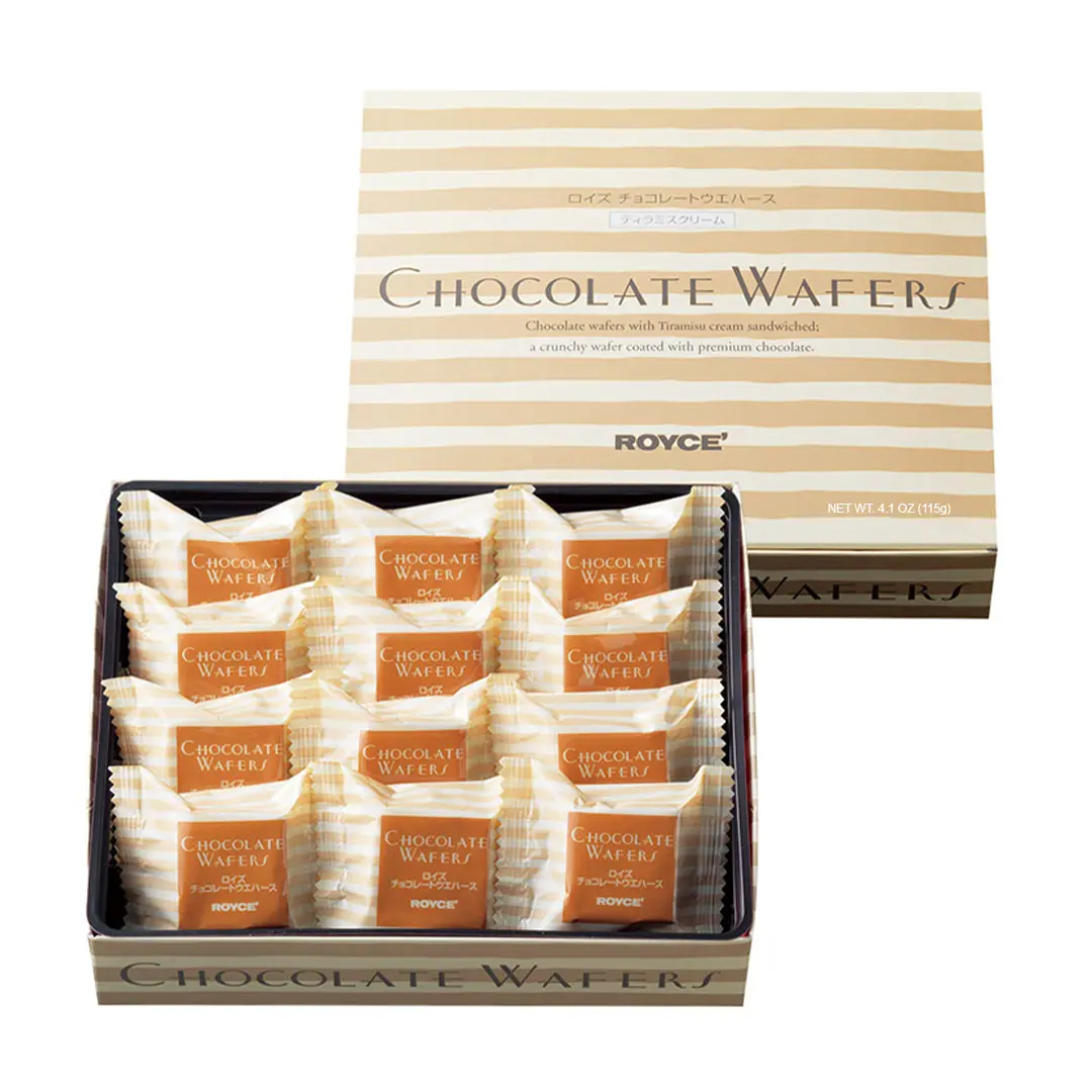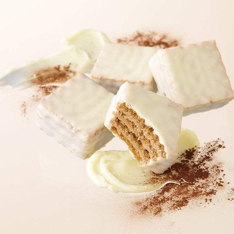 A classic dessert gets a contemporary take in this confection. Experience the exquisite blend of flavors with this delightful treat—a sophisticated fusion of coffee and mascarpone cream nestled between crispy wafers, elegantly coated in moderately sweet white chocolate. Inside each box, you'll discover 12 meticulously crafted pieces, inviting you to savor the perfect harmony of rich coffee, luscious mascarpone, and the sweet embrace of white chocolate. Elevate your indulgence with this thoughtfully curated combination, where each bite is a symphony of elegance and sweetness.