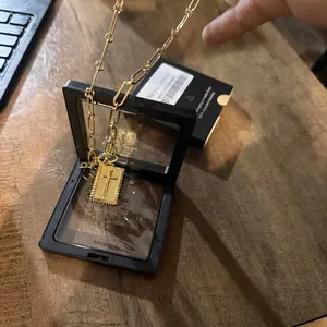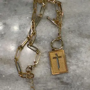 Beautiful necklace. Love the paperclip design and the cross. I’ve showered in this and it hasn’t turned. Got several compliments. A+++++