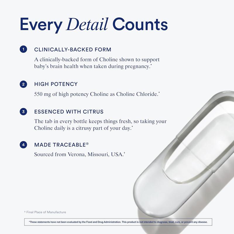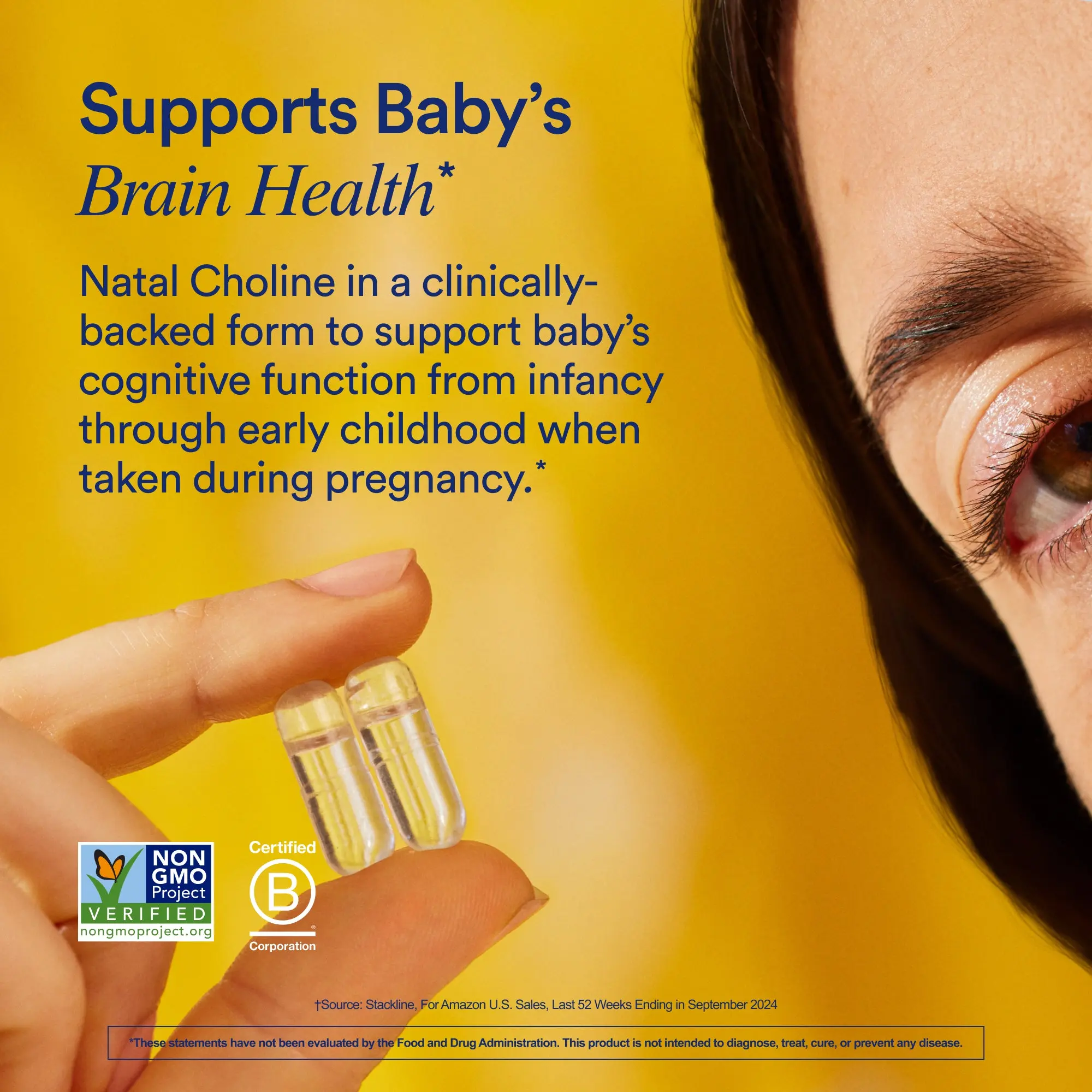 This clinically-backed Choline supplement is designed to support baby’s cognitive function from infancy to early childhood when taken during pregnancy. Essential for brain development, this supplement helps improve information processing speed and promote sustained attention in early childhood while increasing Choline content in breast milk during nursing.