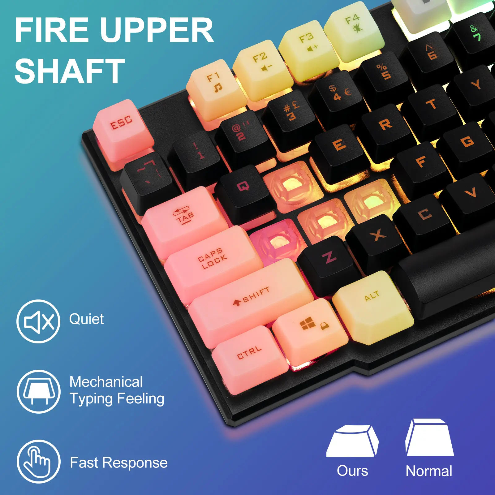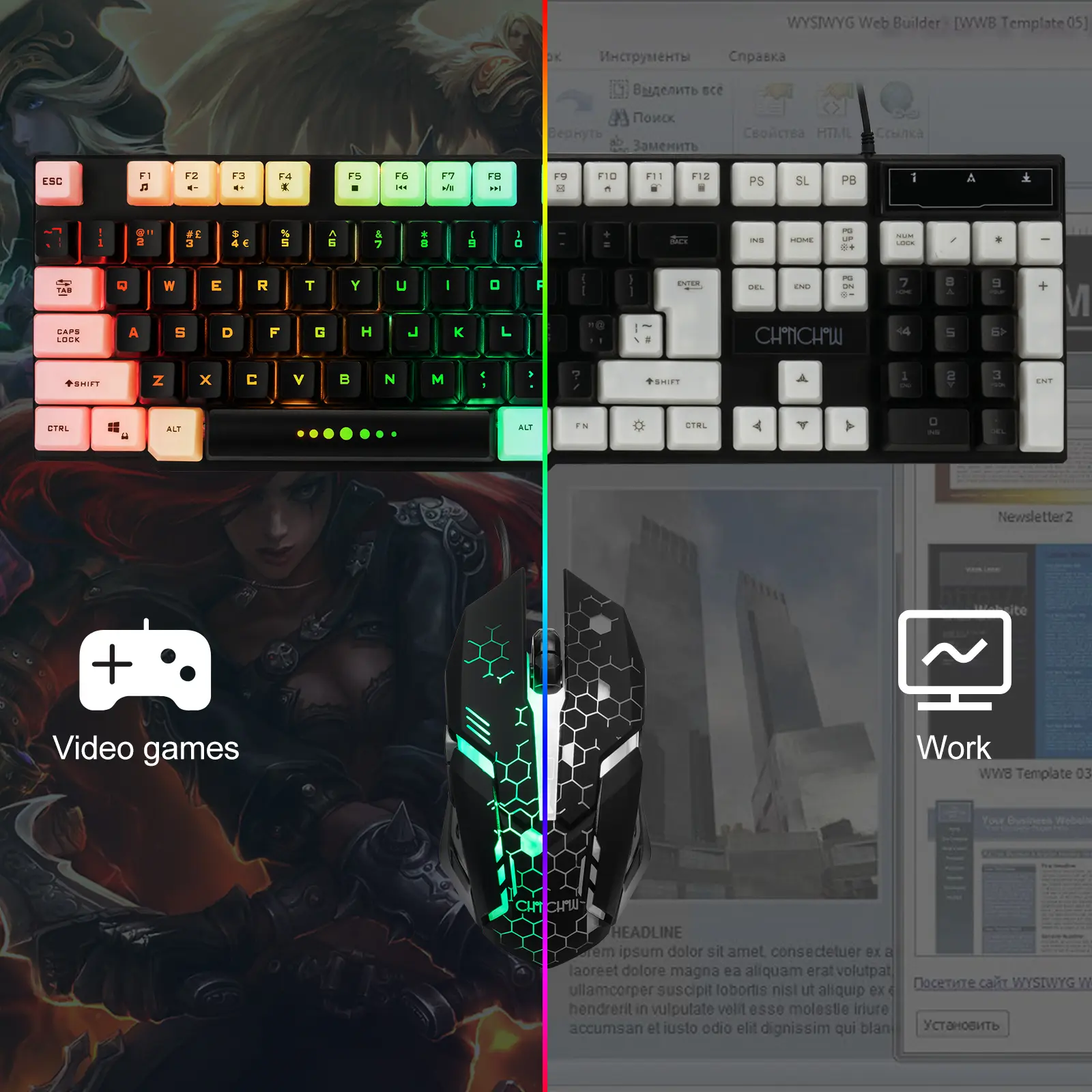 ·LED Light Up Keyboard: Rainbow backlighting with black and white keycaps for different backlight effects.