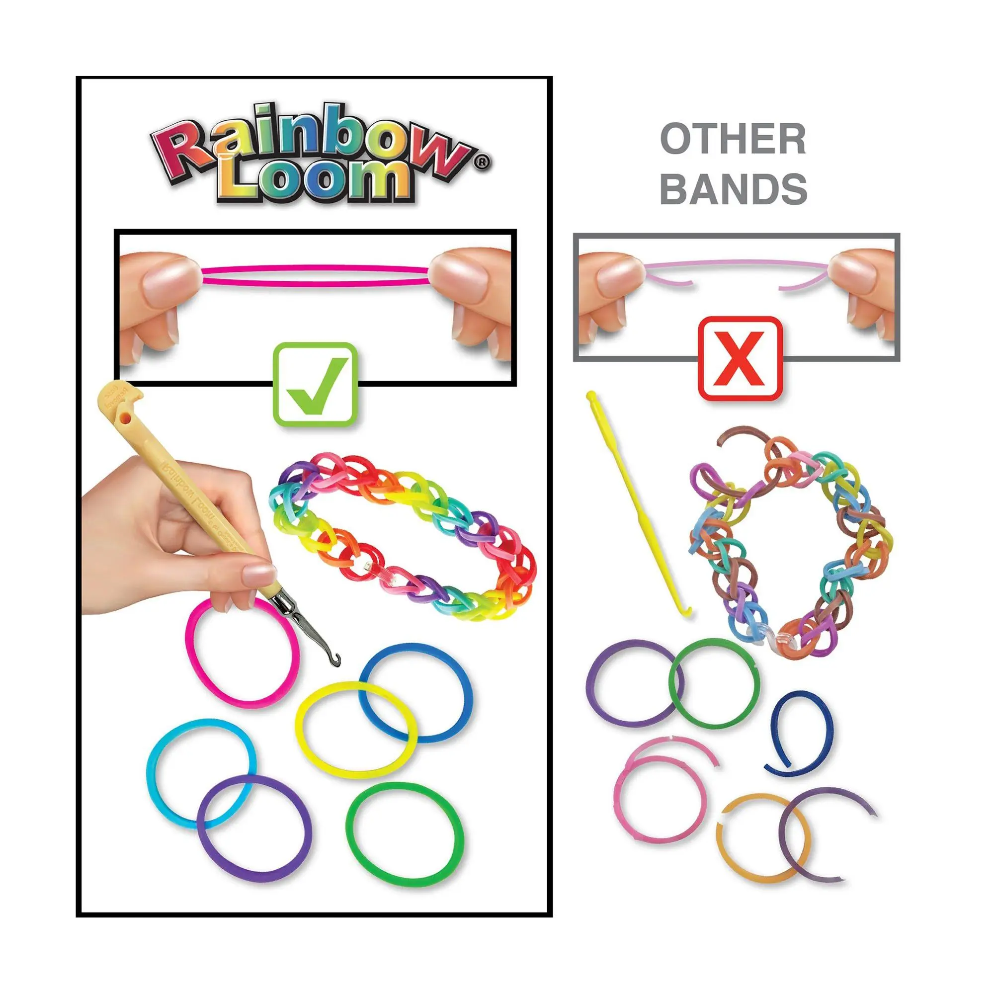 ·Includes 600 latex-free rubber bands, metal hook, 25 c-clips, rainbow loom, mini loom, 12 gift bags, and instructions