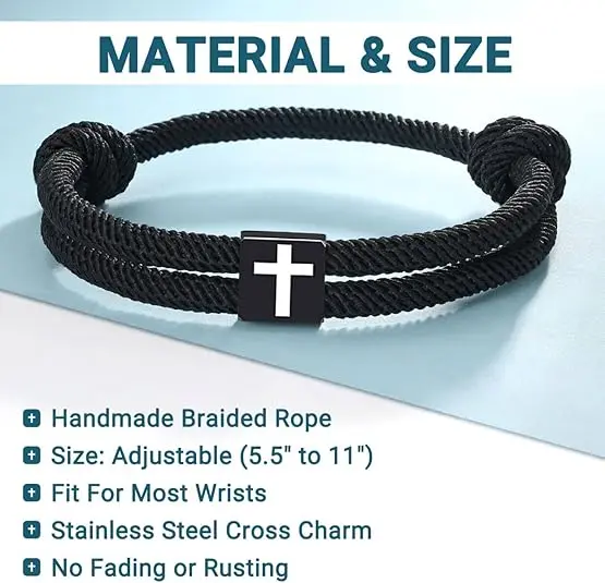 Crafted with handmade braided rope and a premium stainless steel cross charm, it's strong, comfortable, and built to last — won’t fade or rust.