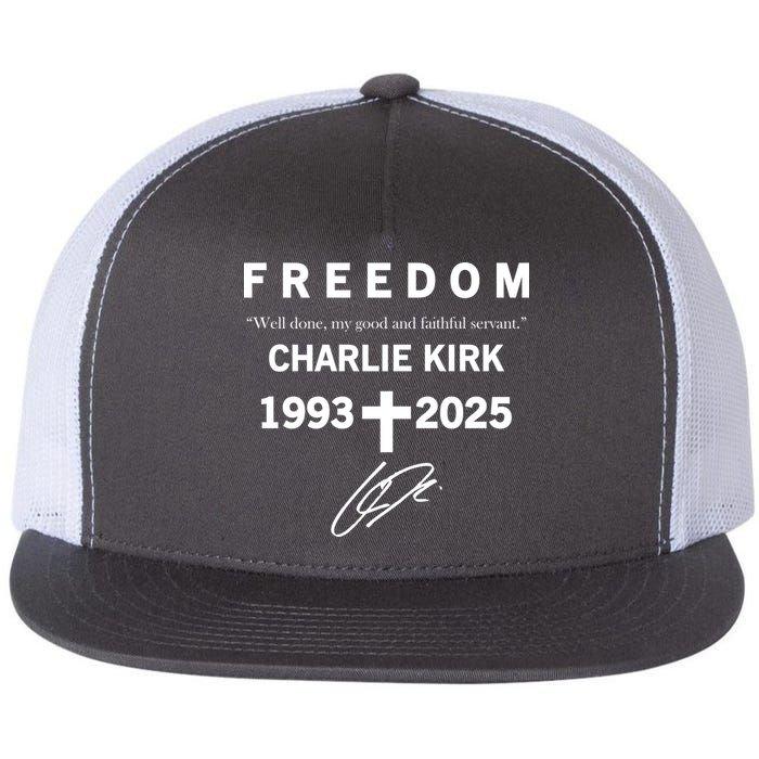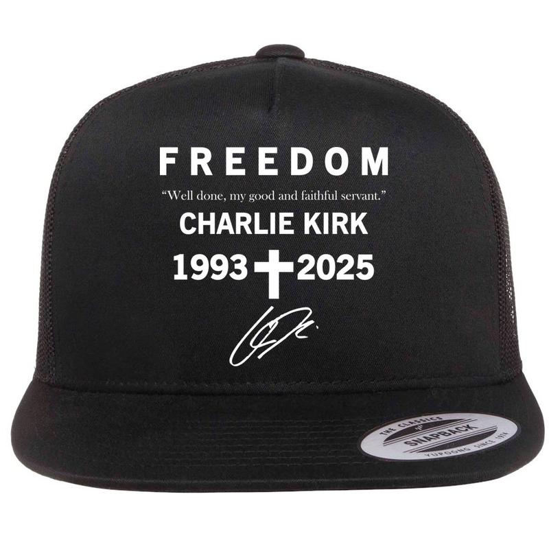 Freedom Charlie Kirk Well Done, My Good And Faithful Servant 1993-2025 Christian Faith Signature Flat Bill Trucker Hat