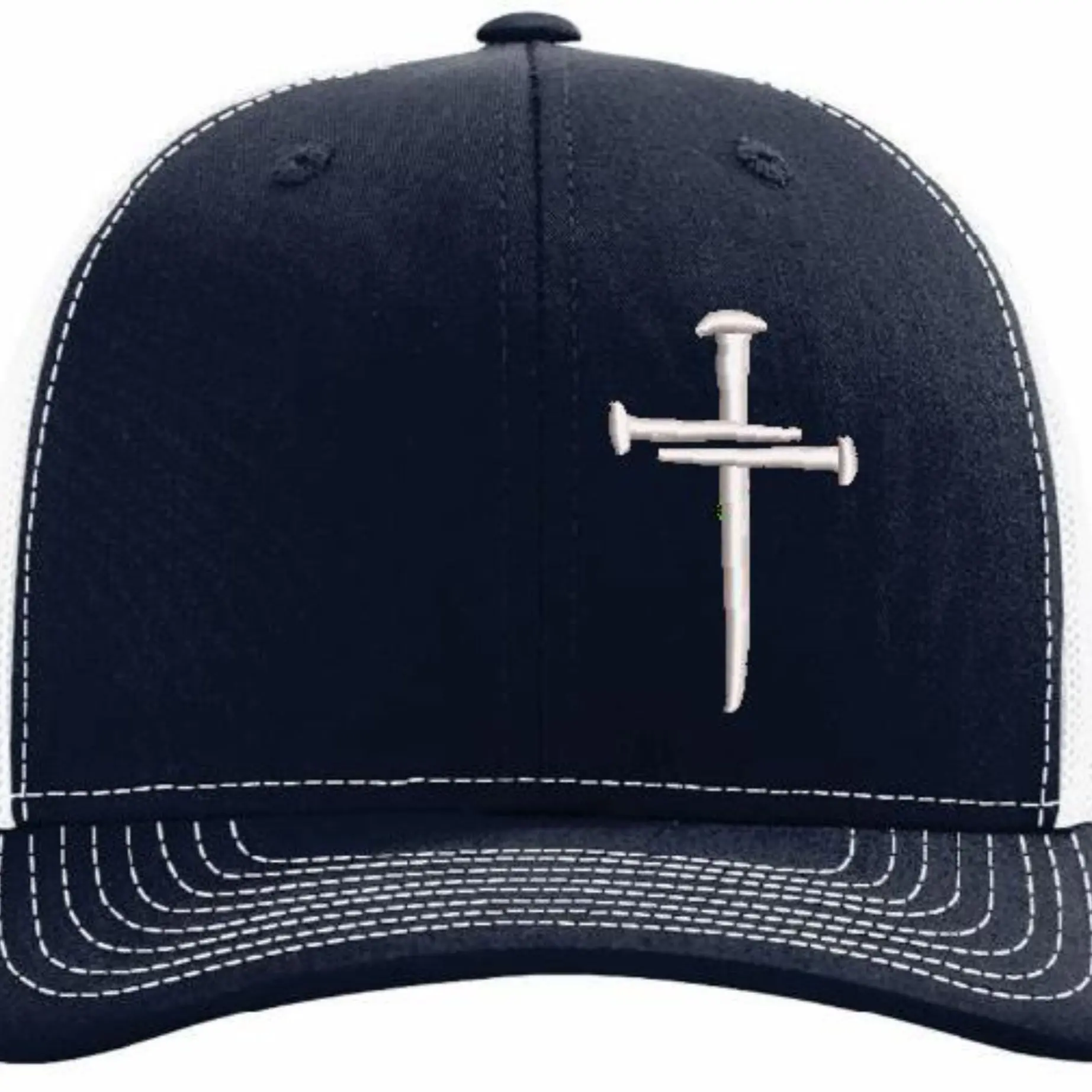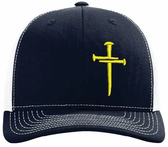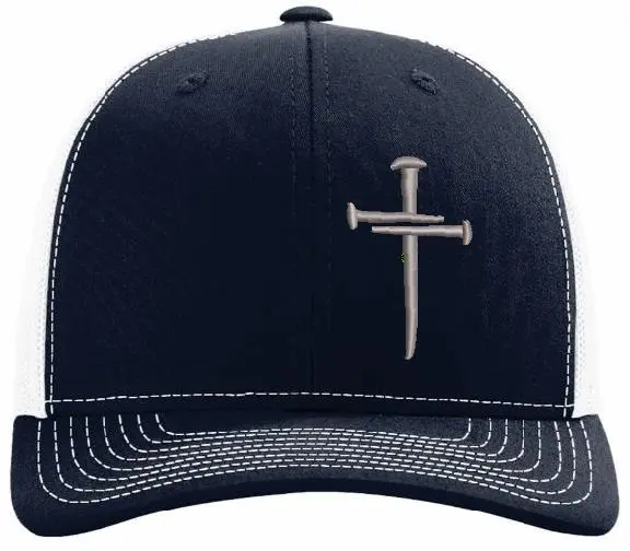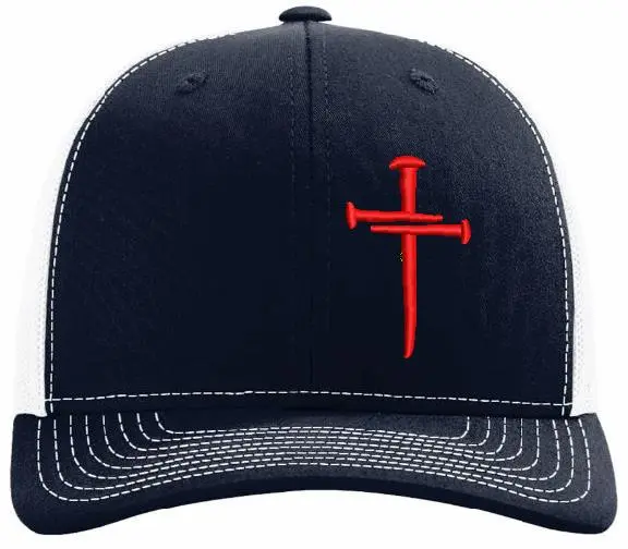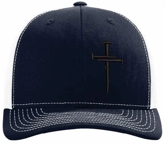 Jesus Christian Cross Cross Christian Men/Women Adjustable Richardson 112 Navy/White Snapback Hat with Free 4" Christian Cross Cross Decal Machine Washable USA Crafted