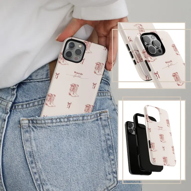 Christian Tough Phone Case, Walk By Faith Western Boots Phone Case, Cute Cowgirl Aesthetic, Christian Inspirational Protective Cover, Gift for Her, Gift for Him
