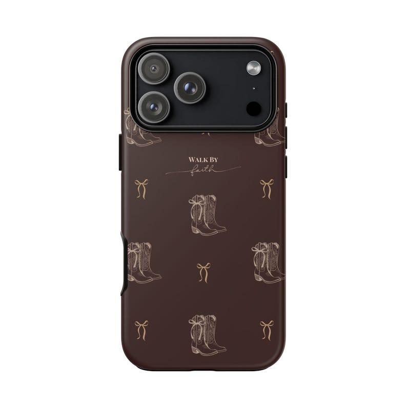 Christian Tough Phone Case, Walk By Faith Western Boots Phone Case, Cute Cowgirl Aesthetic, Christian Inspirational Protective Cover, Gift for Her