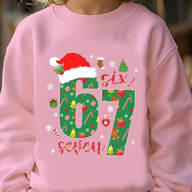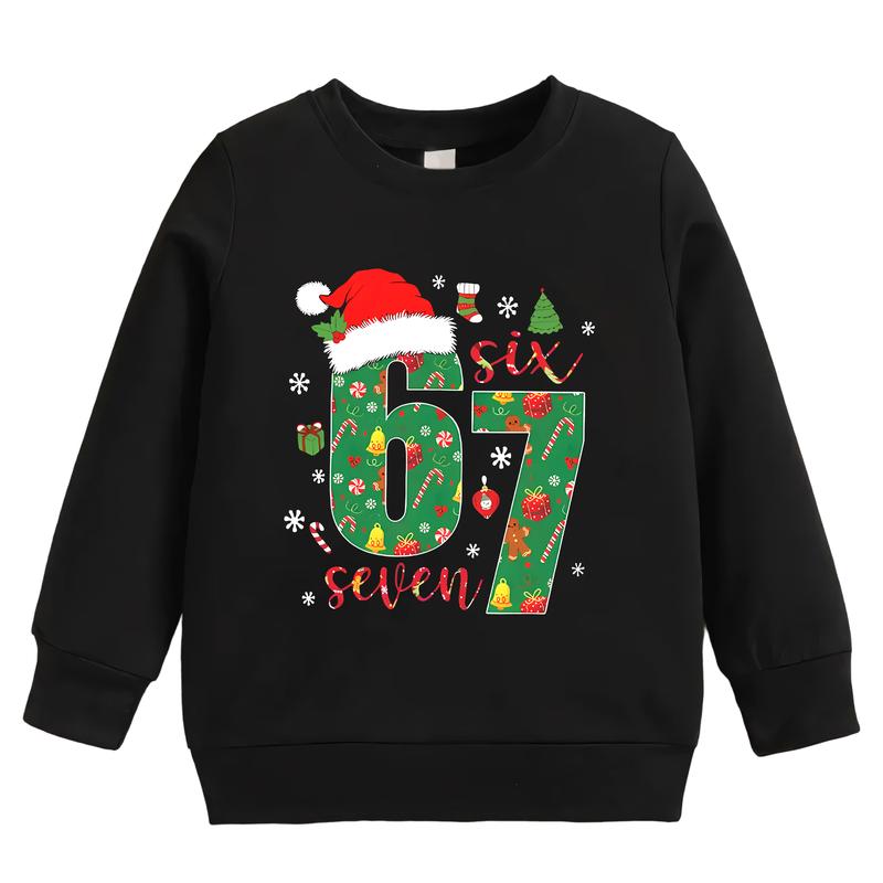 5. Christmas 67 Kids Sweatshirt, Six Seven Christmas Hat Theme Fashion Print, Comfortable Soft Fabric, Holiday Christmas Gift Essential