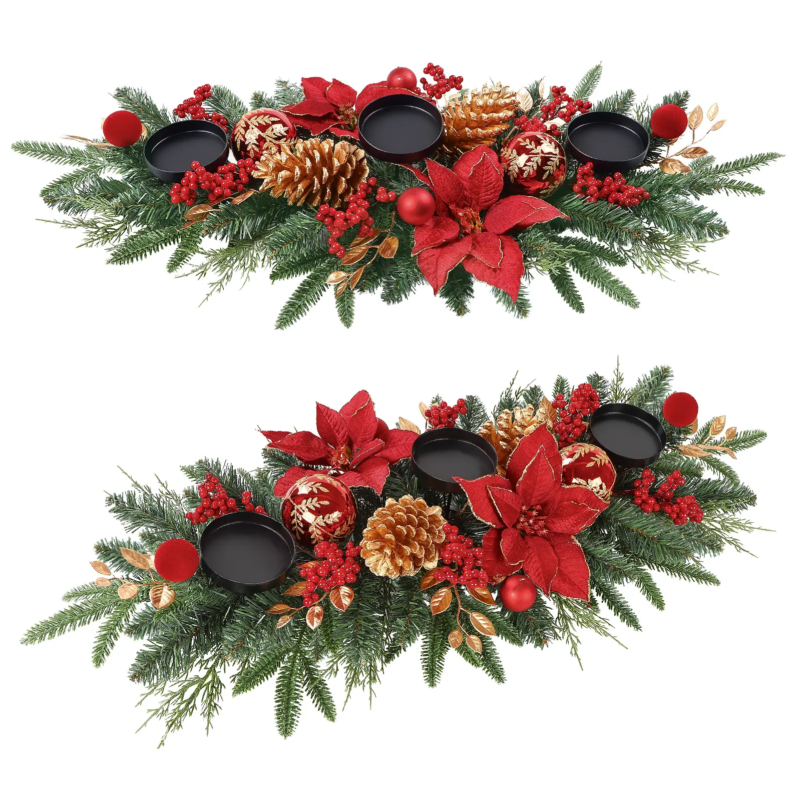 SHareconn 36 inch Christmas Centerpiece with 3 Candle Holders Trays Dining Table Decoration with Baubles Pine Cones Red Berries Spruce Branches Flower for Indoor Home Party Table Holiday DecorSHareconn 36 inch Christmas Centerpiece with 3 Candle Holders Trays Dining Table Decoration with Baubles Pine Cones Red Berries Spruce Branches Flower for Indoor Home Party Table Holiday Decor
