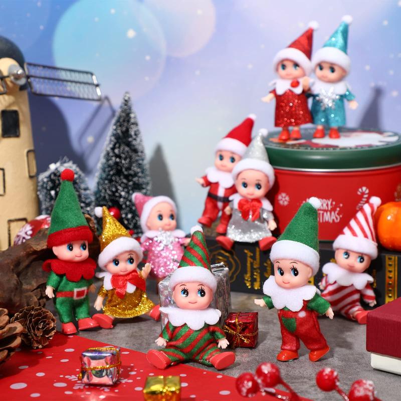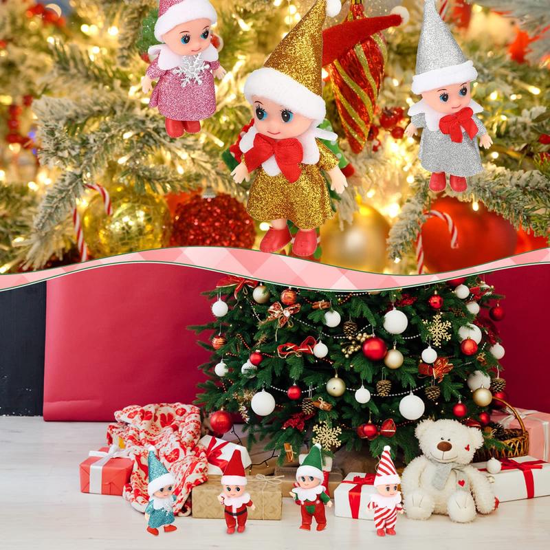 6/10 Pcs Christmas Baby ElF Doll Tiny Magic Elf for Christmas Party Favors Xmas Doll for Christmas Stocking Elf Adventure Bookshelf Christmas Tree Decor Creative Birthday Festival Gift Idea