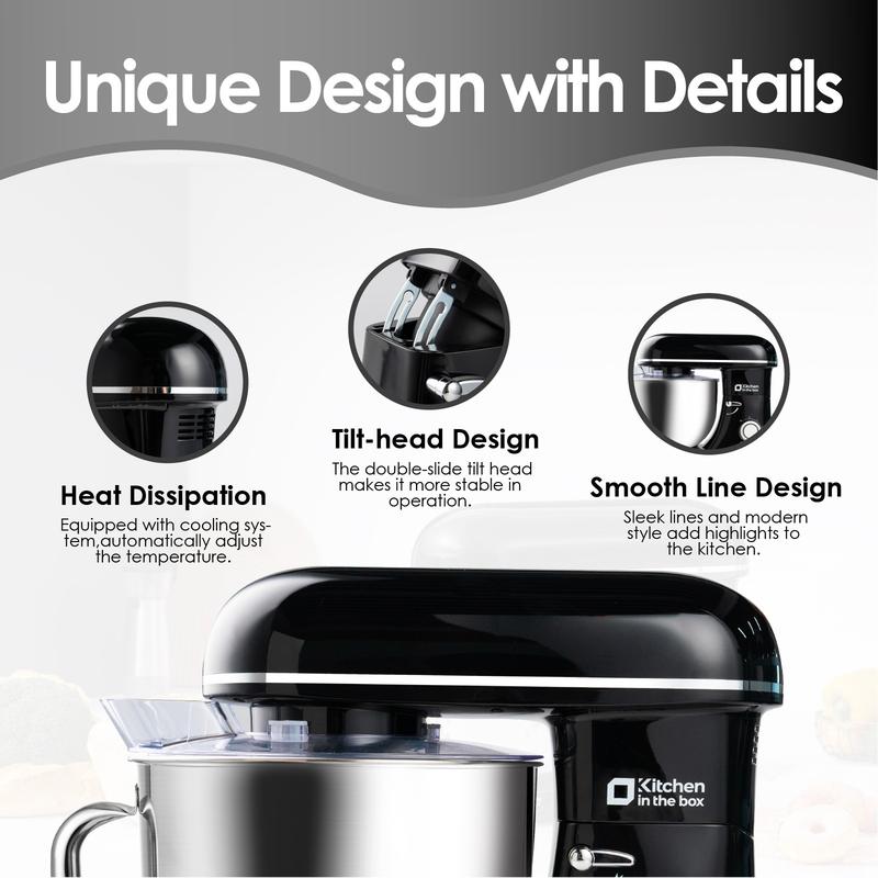 ·6 Speed, Easy to Use: This kitchen mixer features six adjustable speed settings and easy operation to meet your diverse mixing needs. The tilt-head feature allows for effortless switching between bowls and attachments.Its intuitive design ensures ease of use, making it ideal for both beginners and experienced bakers, delivering reliable performance for baking tasks.